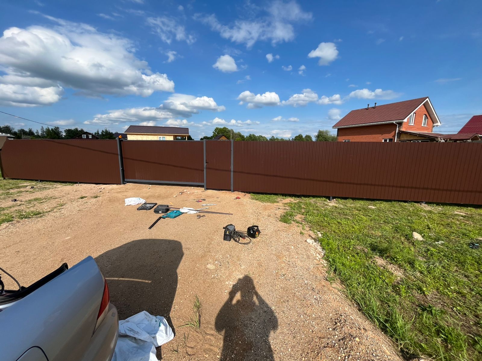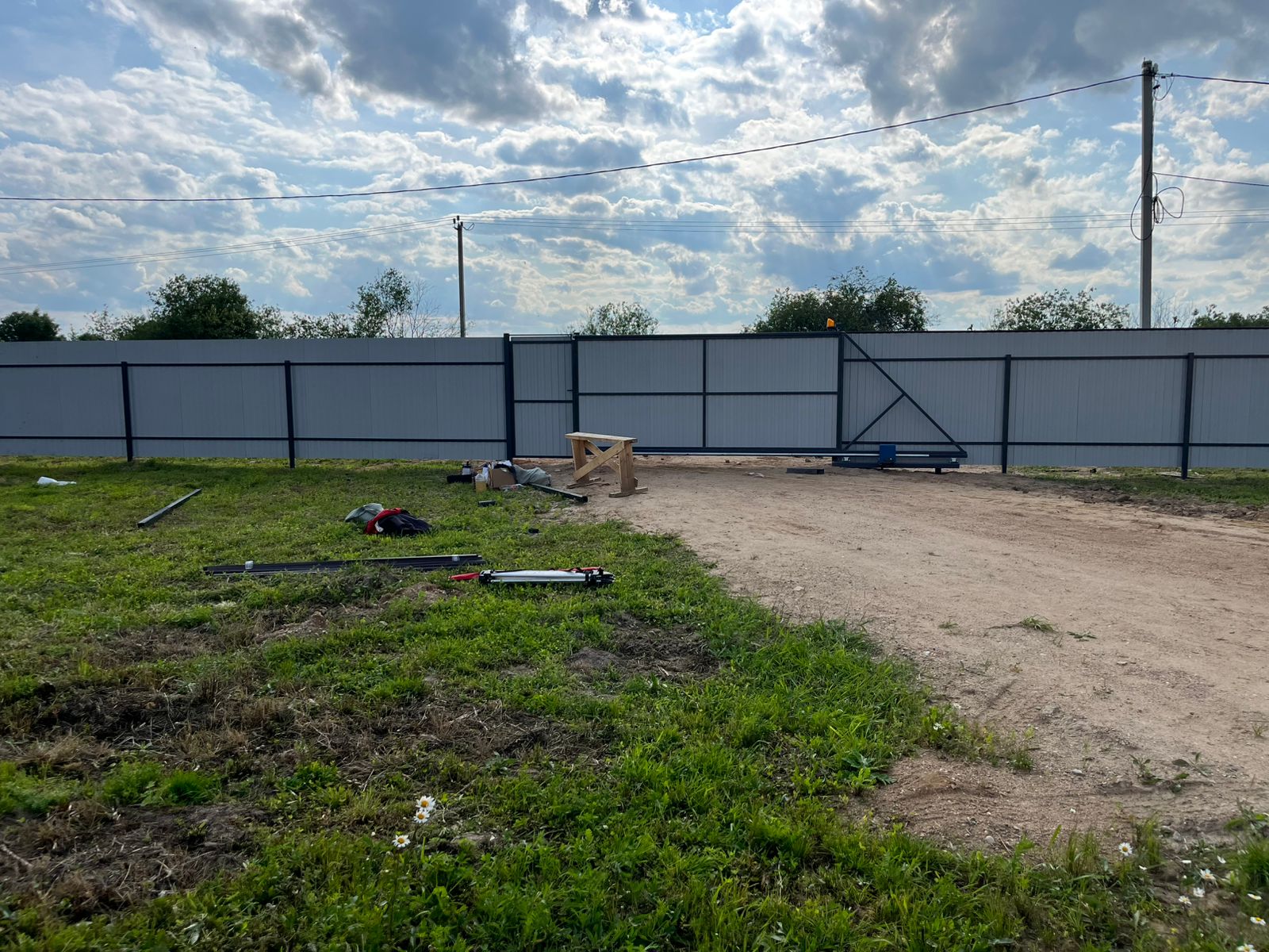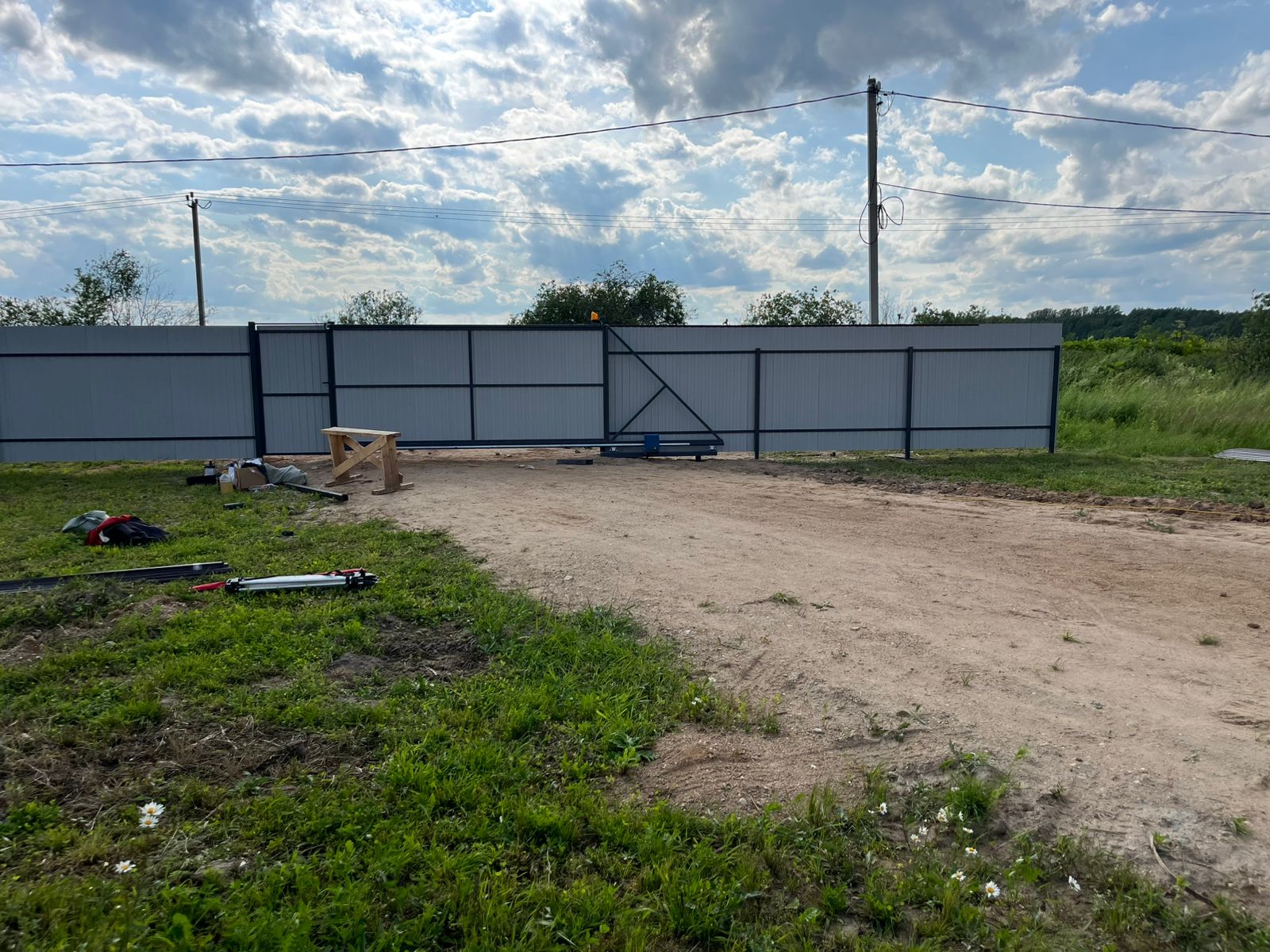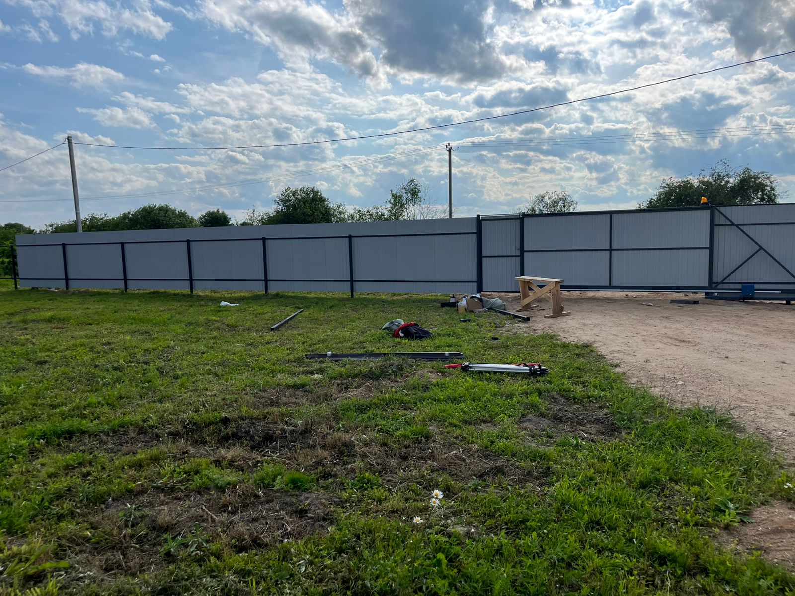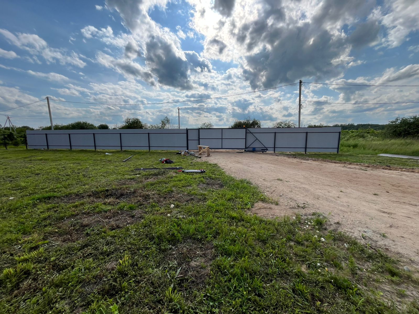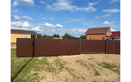 Монтаж забора с откатными воротами и калиткой Сарафоново