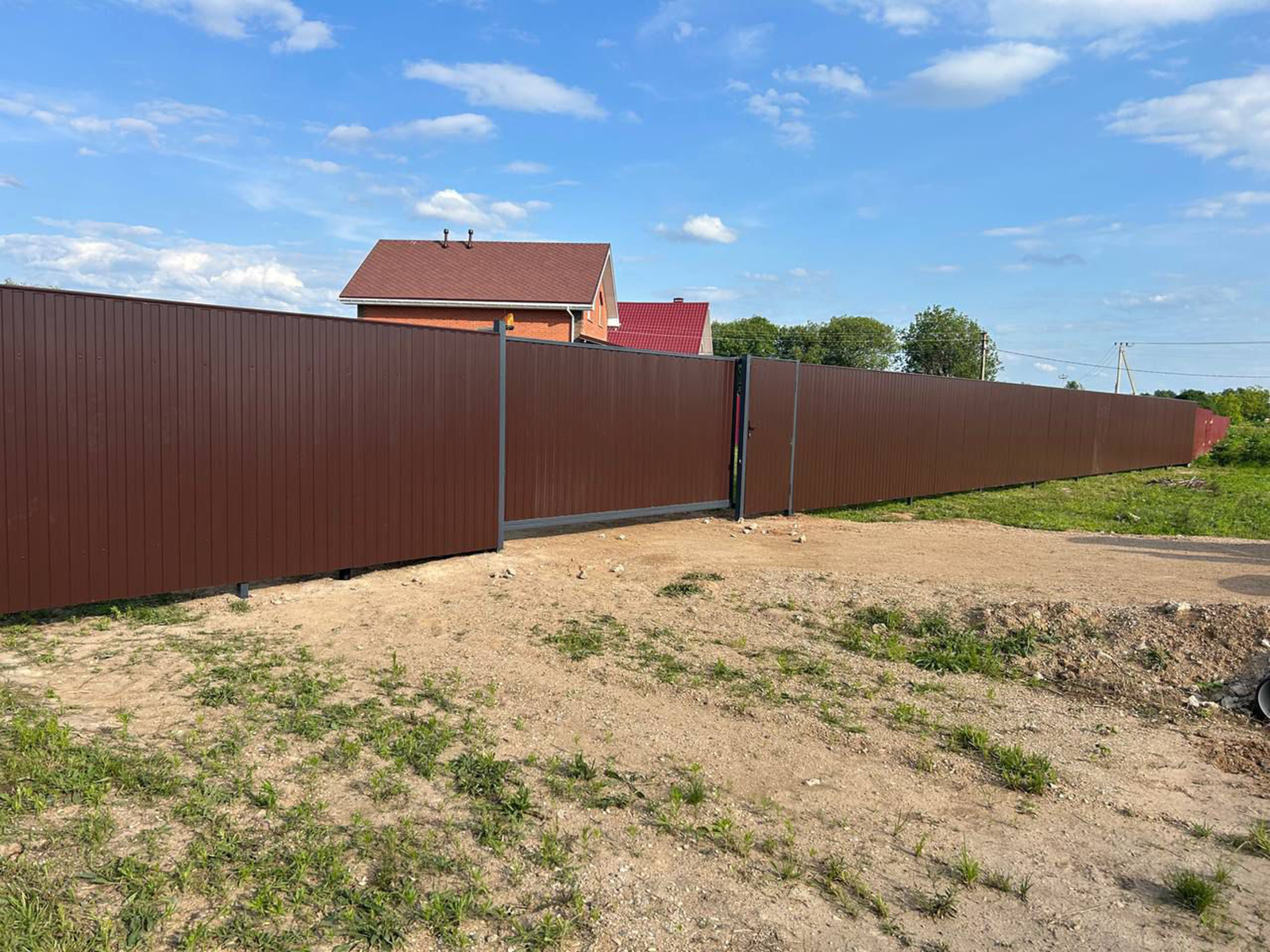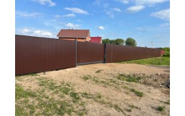 Монтаж забора 37 м.п. с откатными воротами (4 м) и калиткой (высота 1,8м), цвет 8017, Сарафоново