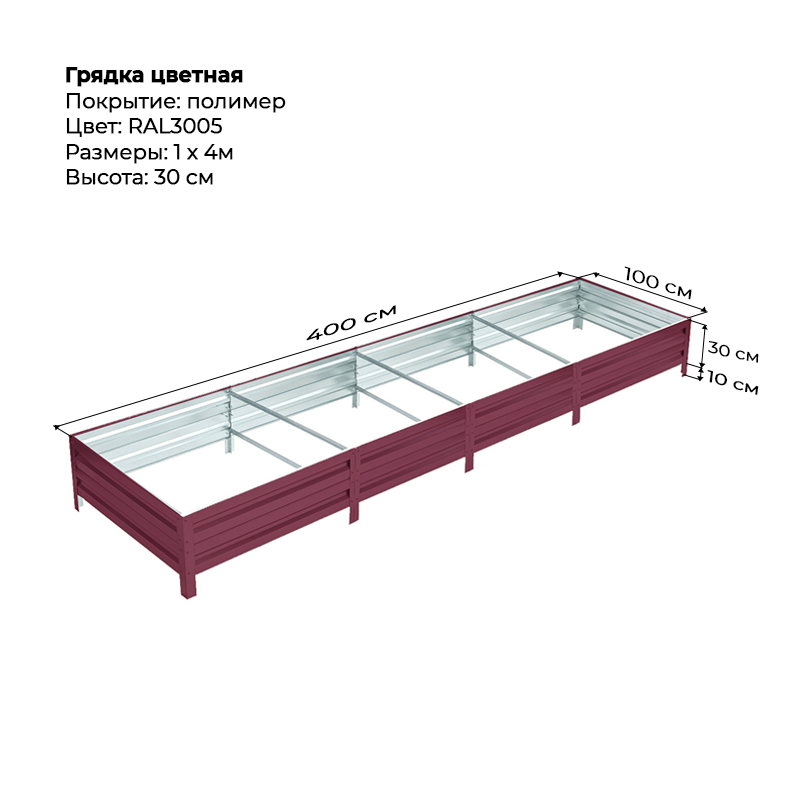 Грядка 1*4м цветная (высота 30 см)