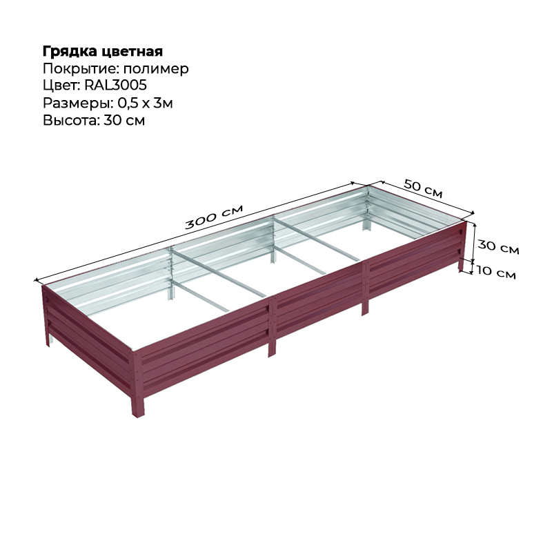 Грядка 0.5*3м цветная (высота 30 см)