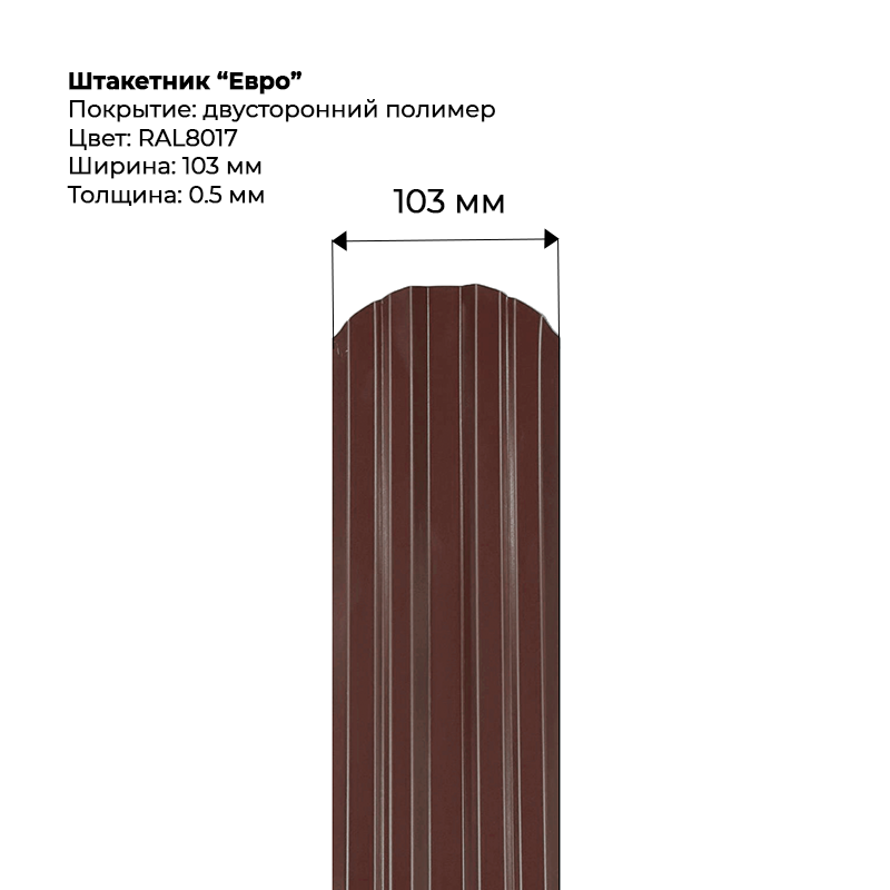 Металлический штакетник двусторонний, "Евро-RAL8017"