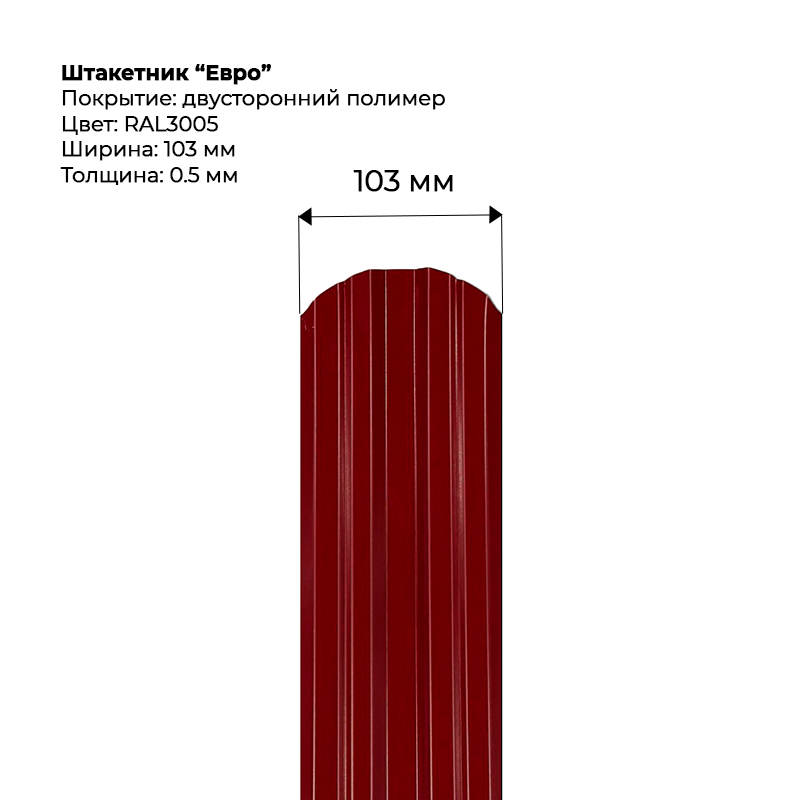 Металлический штакетник двусторонний, "Евро-RAL3005"