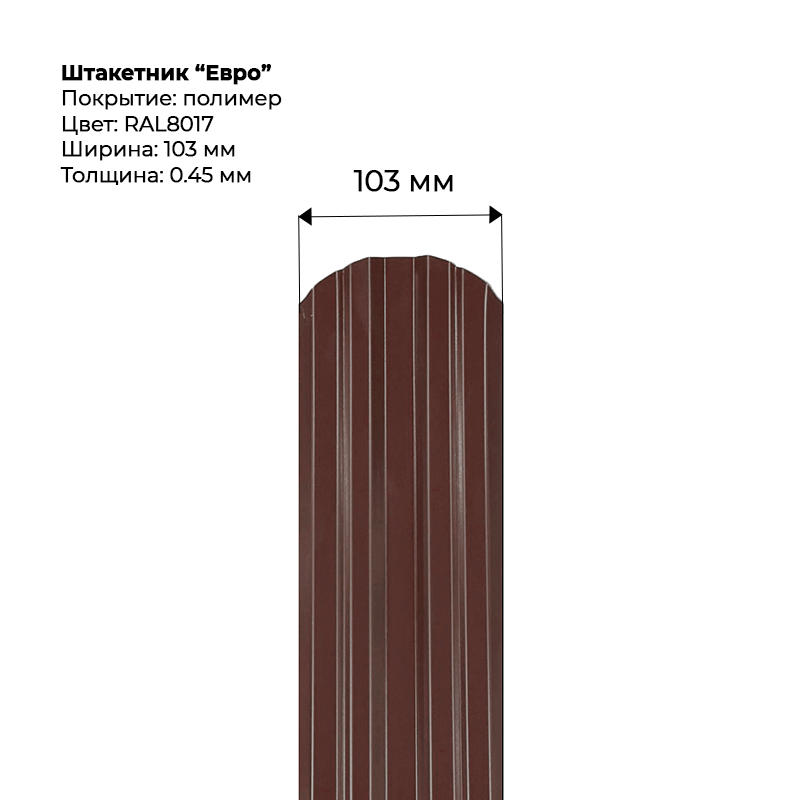 Металлический штакетник односторонний "Евро-RAL8017"