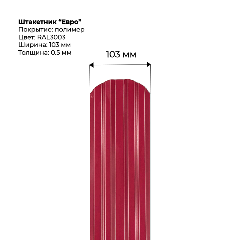 Металлический штакетник односторонний "Евро-RAL3003"