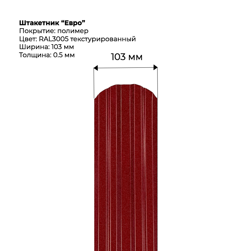 Металлический штакетник текстурированный, "Евро-RAL3005"