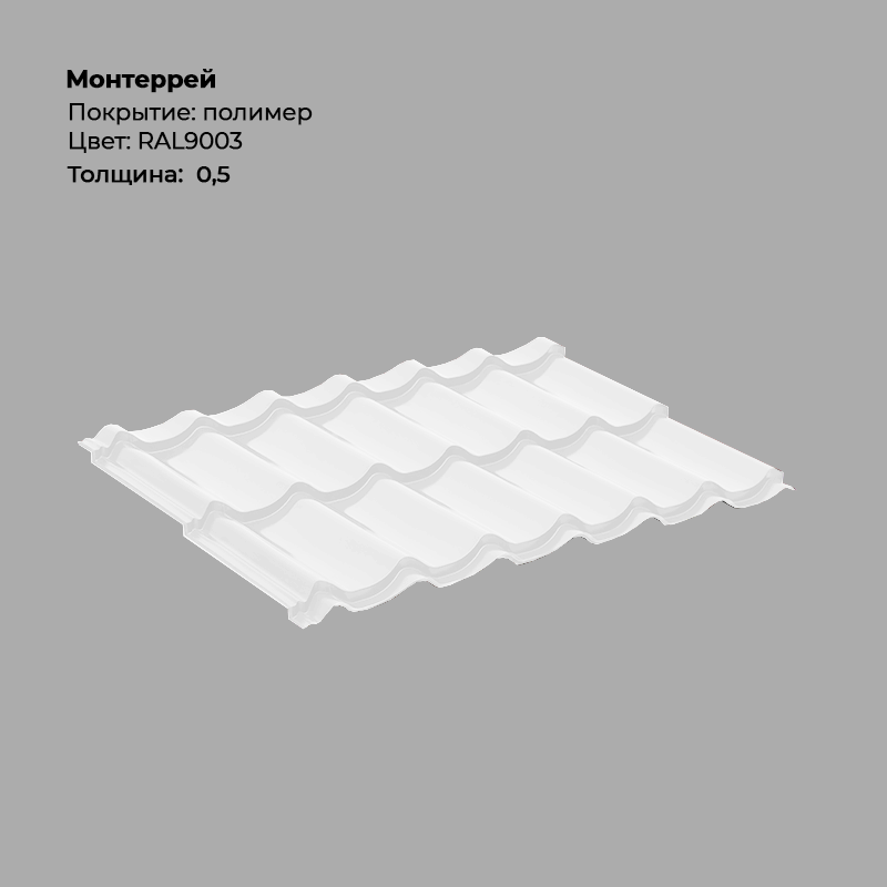 Металлочерепица Монтеррей — это современное и надежное кровельное покрытие, сочетающее стильный внешний вид с высокой прочностью и долговечностью. Изготовленная из оцинкованной стали и покрытая многоцветным полимерным слоем, она обеспечивает отличную защиту от коррозии, ультрафиолетовых лучей и механических повреждений. Благодаря богатому ассортименту цветов, вы сможете выбрать оптимальное решение под любой дизайн и стиль. Металлочерепица Монтеррей идеально подходит для любых строительных проектов, придавая дому или объекту современный и привлекательный вид. Легкая установка, стойкость к погодным условиям и широкий выбор оттенков делают её одним из лучших решений для кровли.