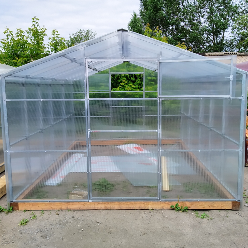 Теплица "Домик" 3*6 шаг 0,65м, 8 усилений (из оцинкованного профиля 40*20), с поликарбонатом.