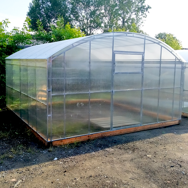 Теплица "Прямостенная" двойная дуга 4*8 шаг 0,65м, 8 усилений, с поликарбонатом.