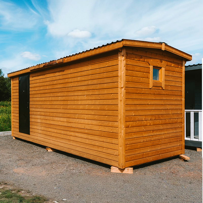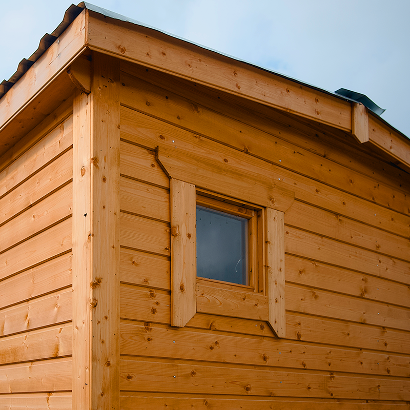 - Обшито хвойной вагонкой, с использованием фольгированной плёнки и фентиляционного зазора.