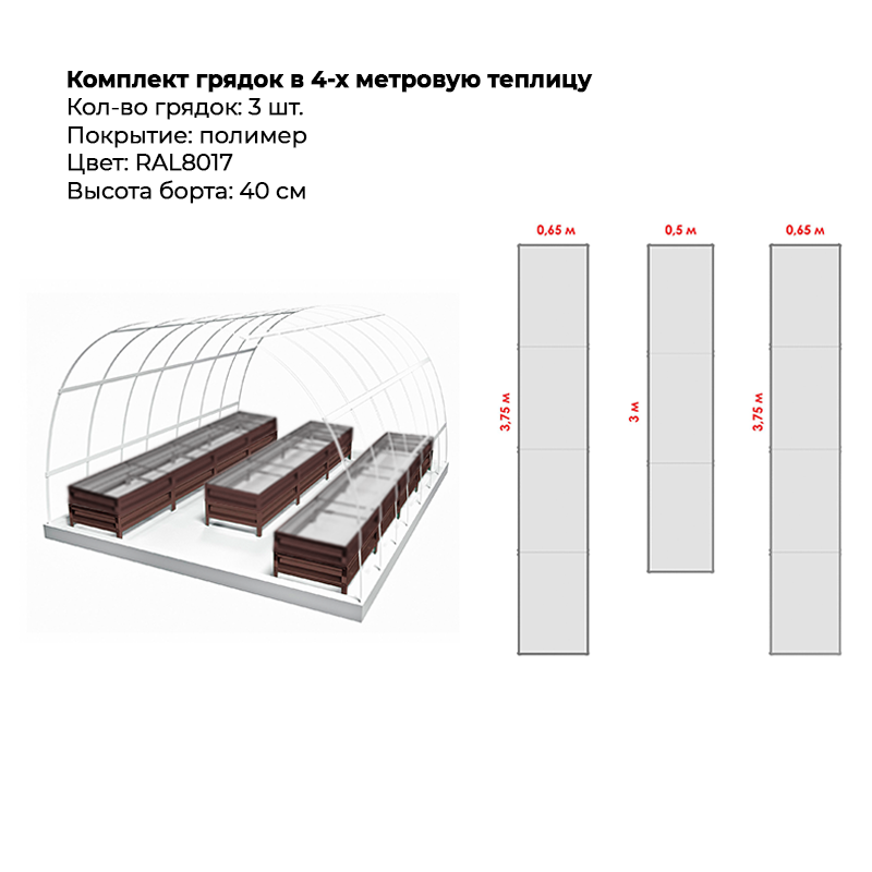 • Комплект в теплицу из трех грядок с полимерным покрытием (высота 40 см)